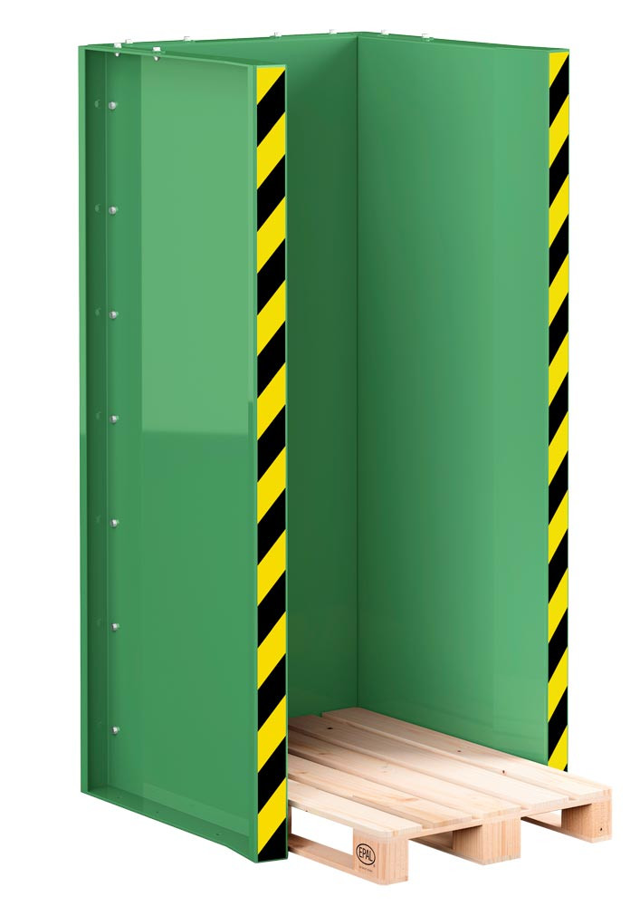 Paletten-Stapel-Station für 15x Europaletten, BxTxH 1020x945x2145 mm, aus 4mm Blech, RAL 6011 resedagrün