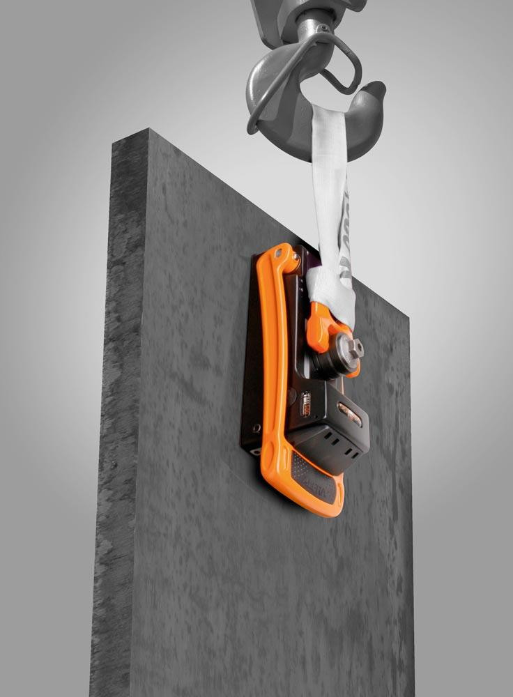 Ausführung: Völlig neues Einhebel-Bedienkonzept mit minimalen Kraftaufwand ∙ Überragende Leistungseigenschaften auf dünnwandigen Materialien – 90 kg Hebekraft schon ab 3 mm Materialstärke bei 3fachem Sicherheitsfaktor ∙ Bis zu 70 % weniger Eigengewicht gegenüber herkömmlichen Magneten ∙ 360° dreh- und schwenkbarer Lasthaken ∙ Gehärtete, TIN-beschichtete Magnethaltefläche