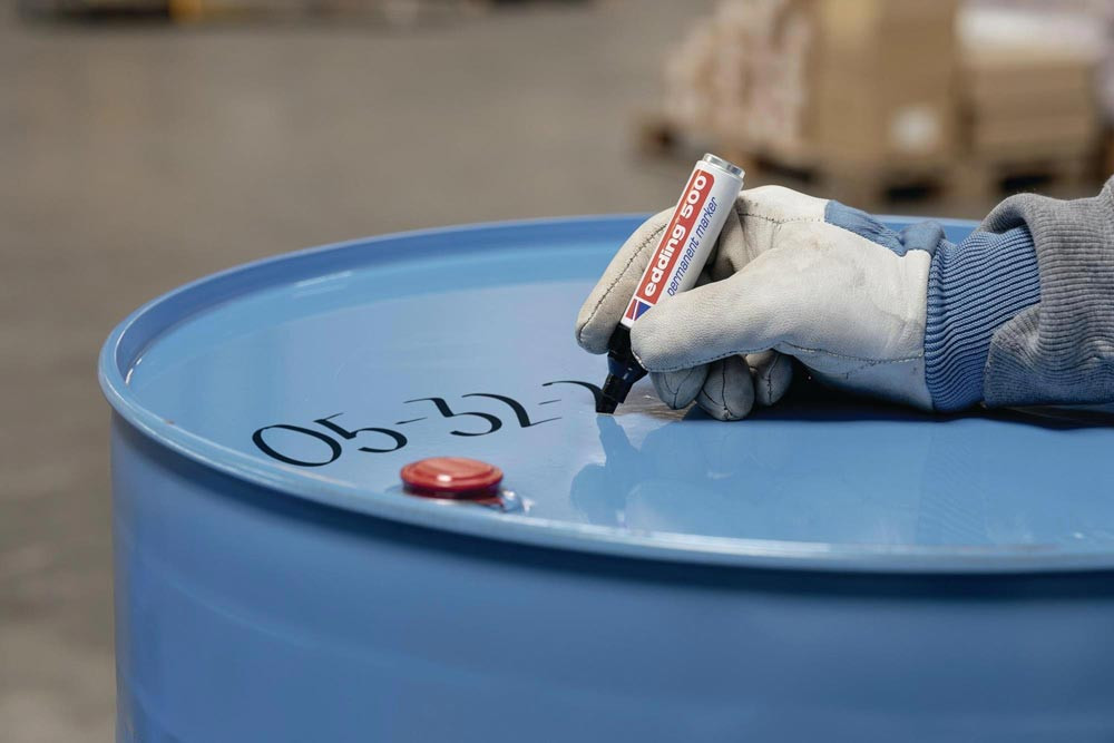 geruchsarme, permanente Tinte · nachfüllbar · mit auswechselbarer Keilspitze · sehr schnelltrocknend, abriebbeständig · lichtbeständig · wisch- und wasserfest · ohne Zusatz von Toluol/Xylol, besonders gut geeignet zum Beschriften, Markieren und Kennzeichnen von fast allen Materialien, auch Glas, Metall und Kunststoff · Aluminiumschaft