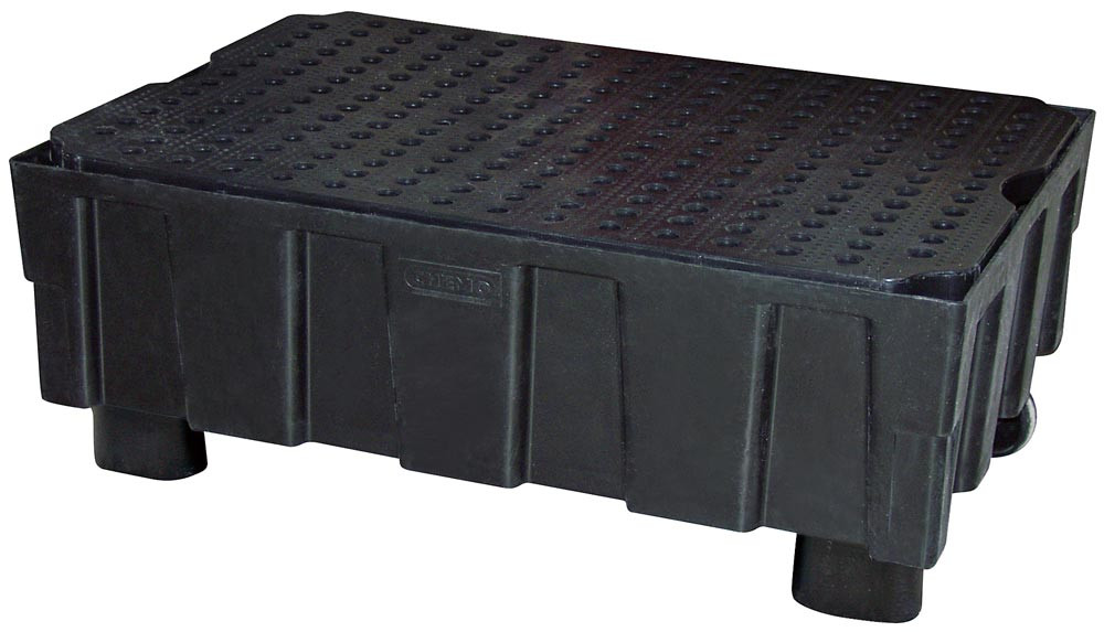 Polyethylen-Auffangwanne mit 4 Sockelfüßen, mit PE-Lochblech, BxTxH 1205x805x440 mm, Vol. 224 l