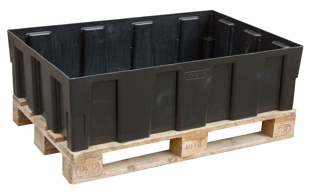 Polyethylen-Auffangwanne zum direkten Aufstellen auf den Boden oder Paletten, ohne Gitterrost, BxTxH 1205x805x330 mm, Vol. 250 l E813150