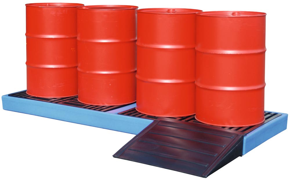 ∙ Hergestellt aus robustem Polyethylen (PE) ∙ Farbe blau ∙ Beständig gegen Säuren, Laugen und Öle sowie weitere nicht entzündliche Medien ∙ Sichere und vorschriftgemäße LAgerung von Kleingebinden und 200 l Fässern ∙ Mit PE-Palette ∙ Mit allgemeiner bauaufsichtlicher Zulassung des DiBt-Berlin ∙ Nicht zur Lagerung entzündbarer Flüssigkeiten zugelassen
