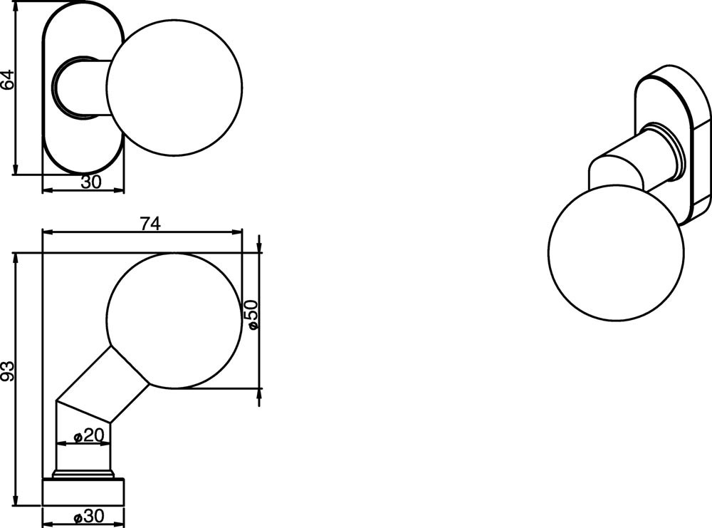 für Profiltüren · schräg, fest auf Rosette · feststehend · mit unsichtbarer Befestigung · Aufnahme M6 · Lieferung ohne Stift und Schrauben