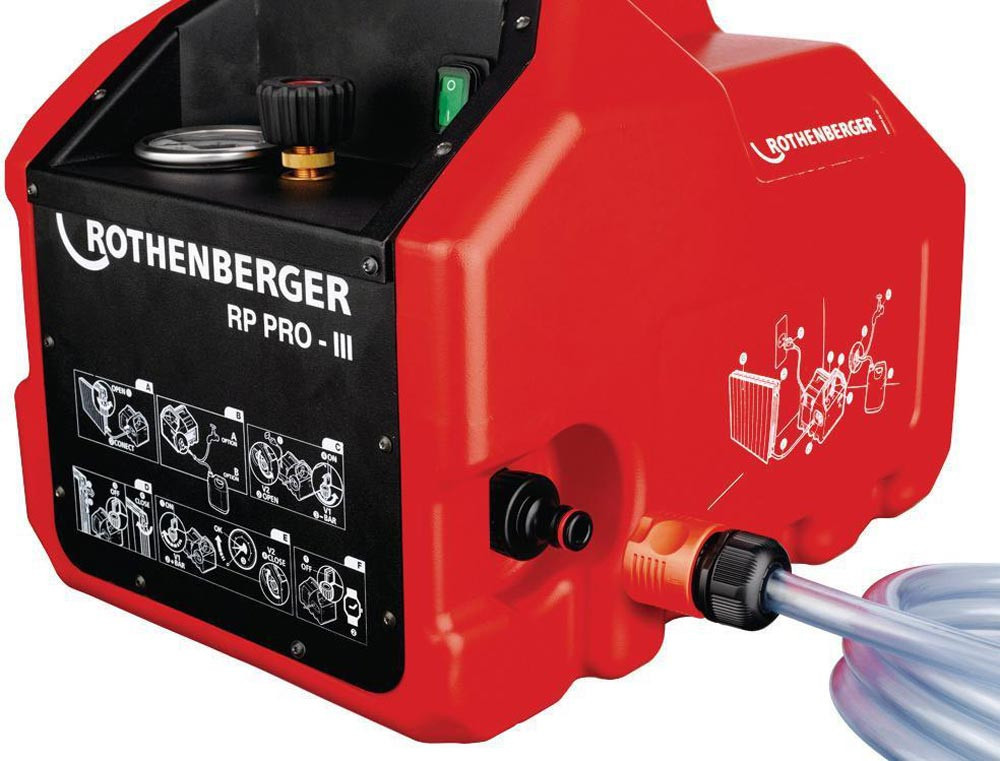 selbstansaugende elektrische Befüll- und Prüfpumpe bis 40 bar · komfortables automatisches Befüllen und Abdrücken von Leitungssystemen und Behältern · kompaktes und robustes Kunstoffgehäuse für einfaches Handling auf der Baustelle · Flüssigkeitszufuhr frei wählbar: selbstansaugend oder aus einer Druckquelle · geeignet für Öl, Wasser, Glykol · mit Stahlgewebe verhindert Messfehler, die durch Aufweiten des Schlauches im Betrieb entstehen können · glyceringedämpftes Manometer gleicht Druckstöße aus, dadurch einfaches Ablesen des Drucks · Prüf- und Druckbereich