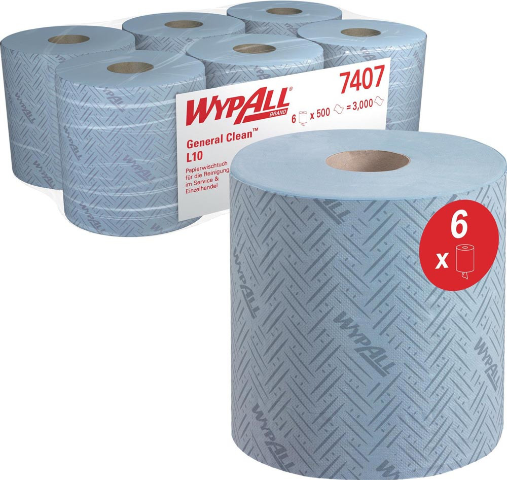 Putztuch WYPALL L10 7407 L.ca.380 mmxB.ca.183 mm blau 1-lagig, perforiert, RCS 6 RL/KT E6462734