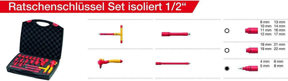 Steckschlüssel-Set 1/2″ (16-teilig, isoliert)