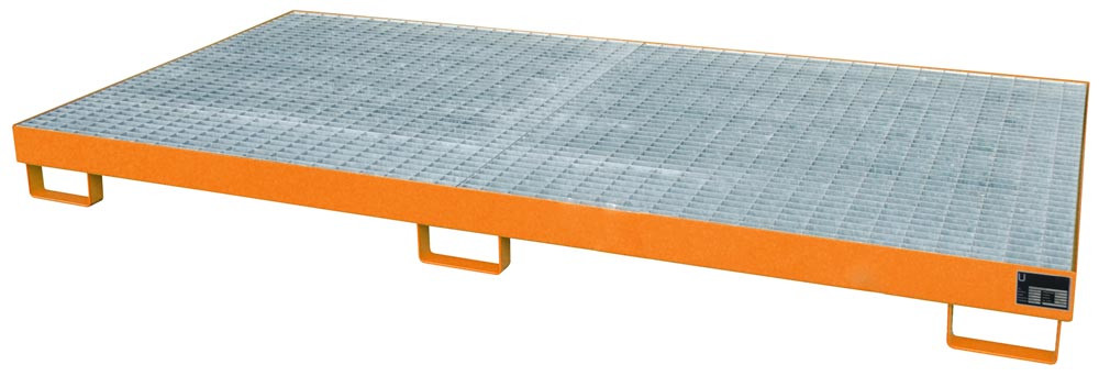 Regalwanne f. Trägerlänge 1800 mm, m. verz. Gitterrost, BxTxH 1750x1300x250 mm, Volumen 240 l, RAL 2000 E1987192