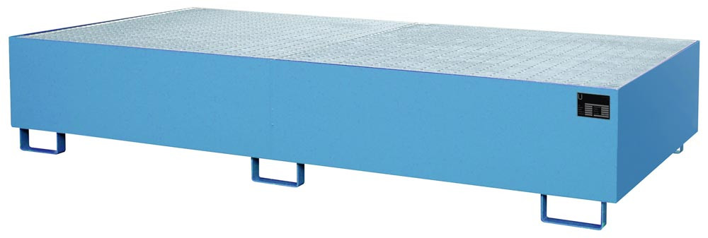 Regalwanne f. Trägerlänge 2700 mm, m. verz. Gitterrost, BxTxH 2650x1300x435 mm, Volumen 1000 l, RAL 5012