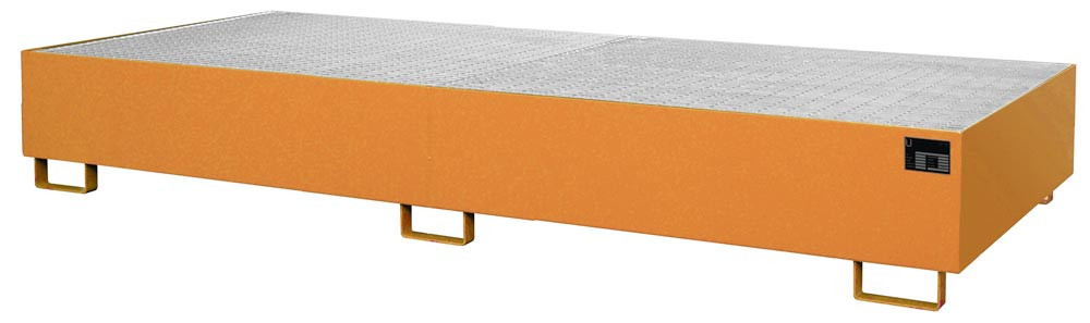 Regalwanne f. Trägerlänge 2200 mm, m. verz. Gitterrost, BxTxH 2150x1300x225 mm, Volumen 240 l, RAL 2000 E1987195
