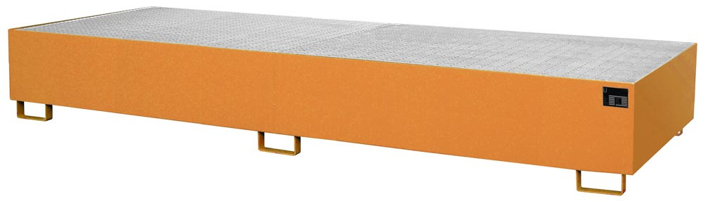 Regalwanne f. Trägerlänge 3600 mm, m. verz. Gitterrost, BxTxH 3550x1300x355 mm, Volumen 1000 l, RAL 2000