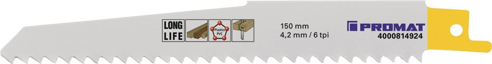 Säbelsägeblatt Länge 150 mm Breite 19 mm 4,2 mm Zahnteilung TPI 6 HCS/CV gefräst, geschränkt, schräg geschärft 25 Stück / Karte E6009114