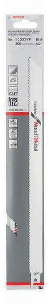 Säbelsägeblatt S 1222 VF Länge 300 mm Breite 19 mm Zahnteilung TPI 10-14 1,8-2,6 mm varioverzahnt 5 Stück / Karte E417684