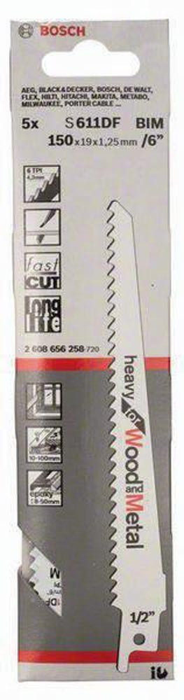 Säbelsägeblatt S 611 DF Länge 150 mm Breite 19 mm Zahnteilung TPI 6 4,3 mm geschränkt, gefräst 5 Stück / Karte E417728