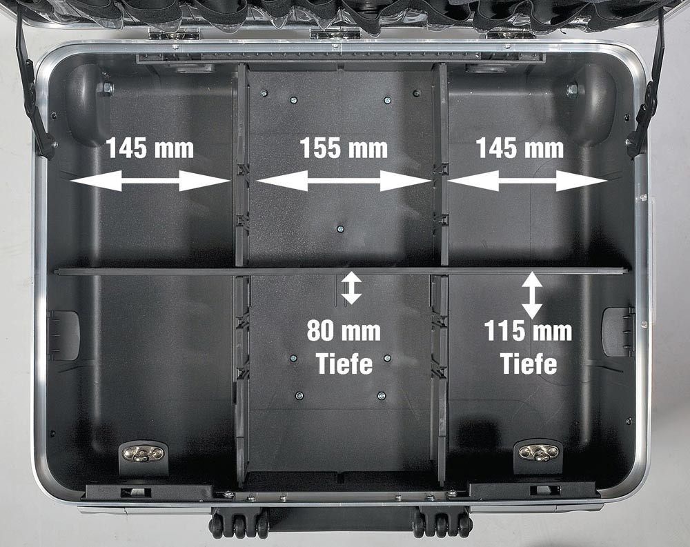 · 1 Bodenschale mit 6 Werkzeugfächern, frei unterteilbar