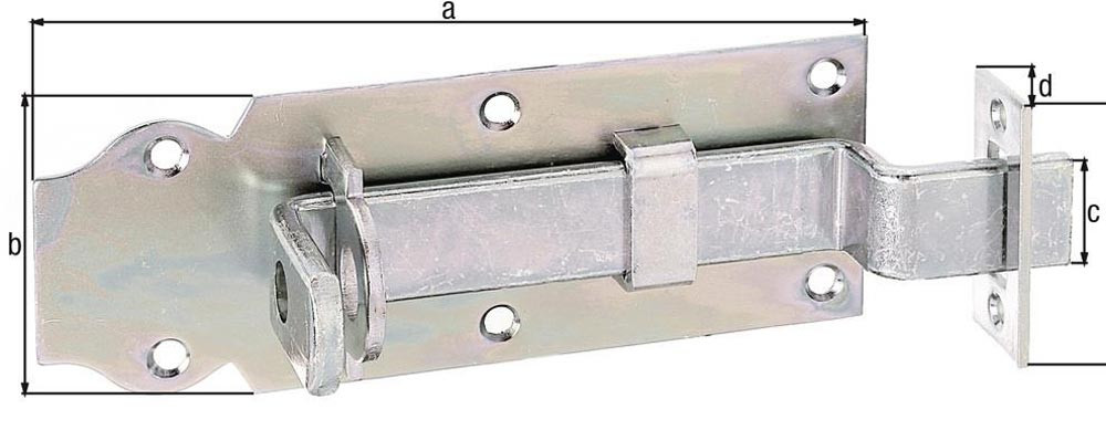 Schlossriegel Länge 120 mm Breite 44 mm gekröpft Stahl galvanisch gelb verzinkt Ausschub 25 mm E1990991