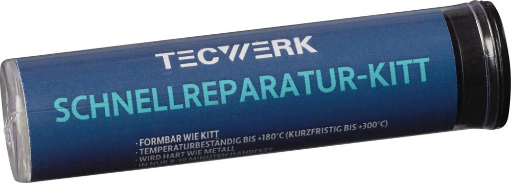 2-Komponenten Reparaturkitt · repariert Fehlbohrungen, Risse und ausgebrochene Gewinde an Metall, Holz und Kunststoff · Verarbeitung wie Knetmasse · kann nach Aushärtung mechanisch bearbeitet werden, Teile können geschliffen, gefräst, gebohrt und überlackiert werden · anwendbar in der Elektrik- und Elektronikindustrie, Maschinenbau, Metallverarbeitung, Automobilbau, Kunststoffverarbeitung, Modellbau, Möbelindustrie u. v. a. · handfest nach 20 Min. · endfest nach 24 Std. · temperaturbeständig von -50 °C bis +180 °C, kurzfristig bis +300 °C