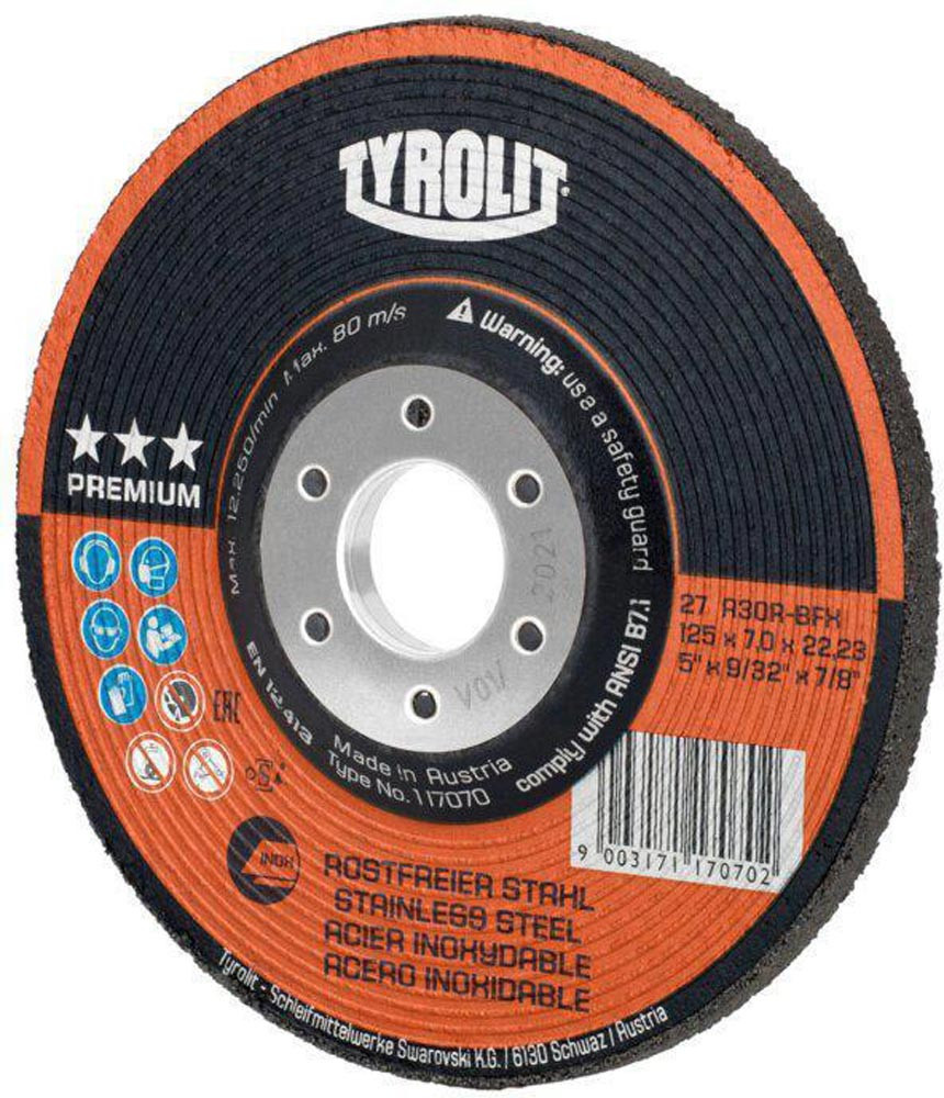 Schruppscheibe PREMIUM D125xS7mm Körnung 30 gekröpft Bohrung 22,23 mm E6483420