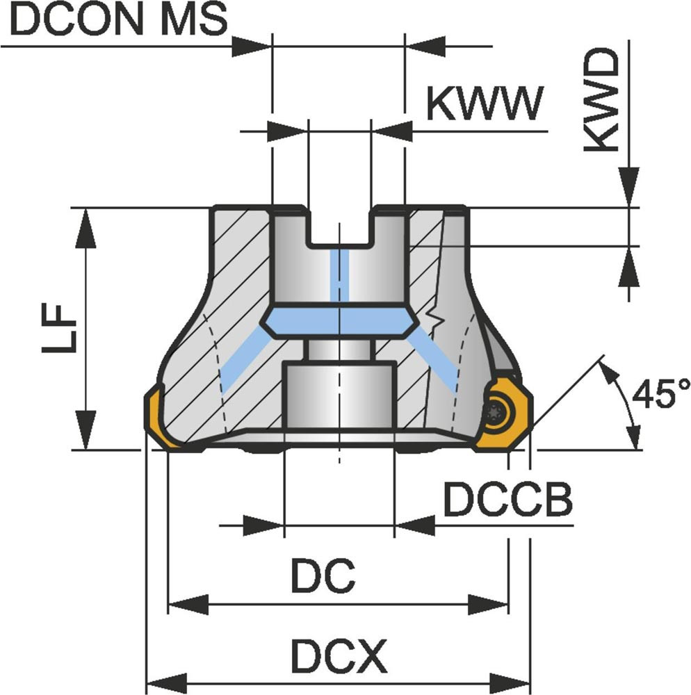 Schulterfräser ISO 63A05R-S45OD05-C D.22mm Rechtslauf Schneid-D.63mm E6503630