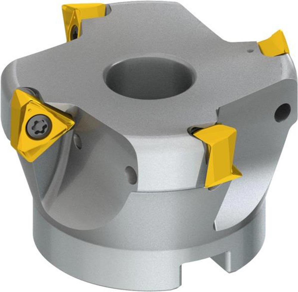 Eck-und Planfräser mit doppelt negativer Geometrie welche 4 aus TNGX 1606.. doppelseitige Wendeschneidplatte · Schneiddurchmesser 63mm mit 90° Anfahrwinkel und 22mm Bohrung gemäß DIN 8030-A · 40mm Einsatzlänge · durchgehende Kühlung und ungleicher Teilung zum Planfräsen · flachen Schulterfräsen · flachen Nutfräsen und Spiralfräsen in vorbearbeiteten Löchern