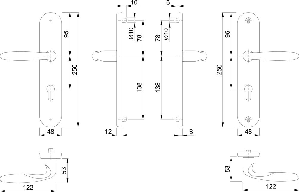 für Abschlusstüren · gehärteter Stahlanbohrschutz im Zylinderbereich · Wechselgarnituren mit gekröpftem Knopf · feststehend (ummontierbar) · mit Schnellstift-Verbindung · hochfeste, sichtbare Verschraubung · Lochung PZ · einschließlich Befestigungsmaterial M 6 · Anschlagrichtung DIN links / rechts · Widerstandsklasse KNS