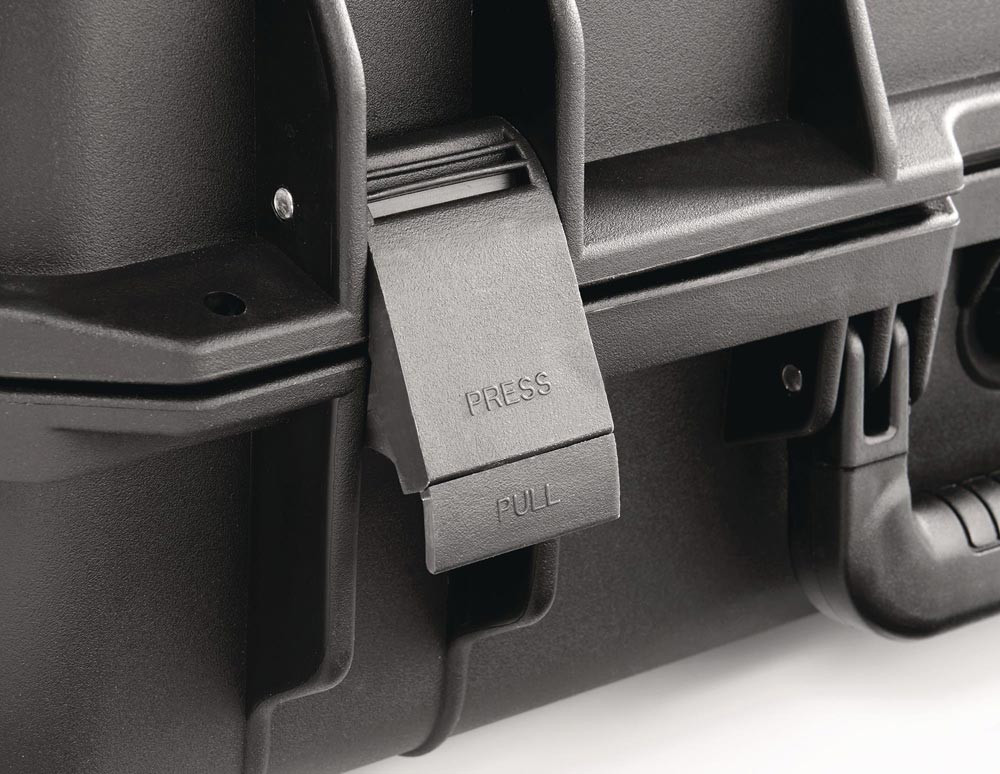 schwarz · luft- und wasserdicht · mit vorgerasteter Schaumeinlage zur leichten individuellen Gestaltung des Innenraums · Schlösser, Lufteinlassschraube, Tragegriff, shock-proof · aus schlagfestem Kunststoff · Verschlussmöglichkeit mit zwei Vorhangeschlössern · (Vorhangeschlösser gehören nicht zum Lieferumfang)