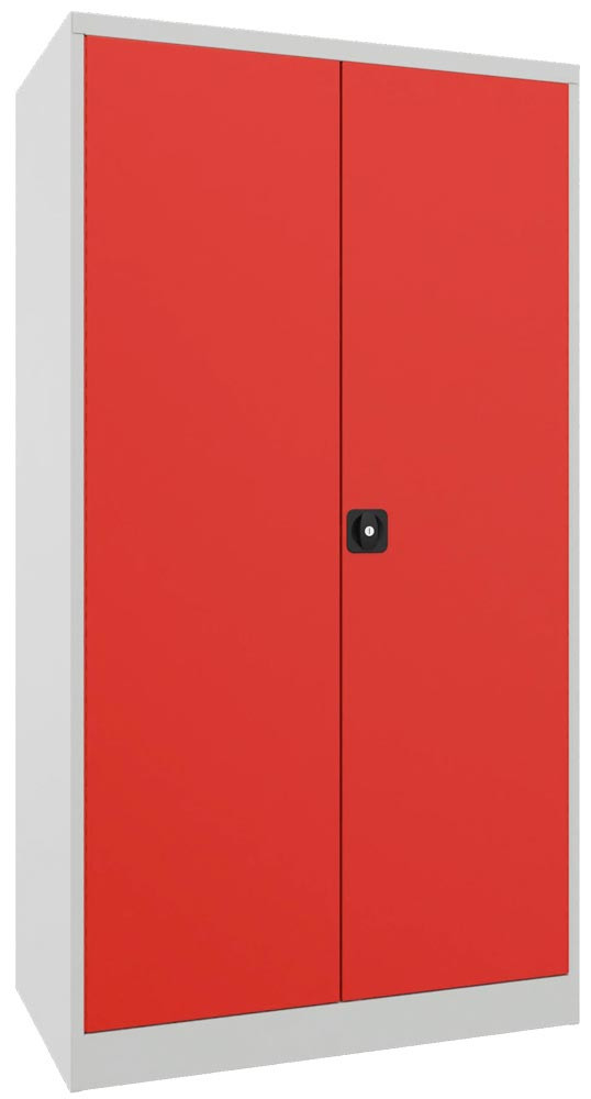 ∙ Besonders stabile, verwindungssteife Stahlblechkonstruktion ∙ Oberfläche pulverbeschichtet ∙ Schränke mit gemeinsam verschließbaren Flügeltüren mit Verstärkungstaschen ∙ Die Türen sind über einen dreiriegeligen Drehgriff mit integriertem Zylinderschloss inkl. 2 Schlüsseln verschließbar ∙ Türöffnung 180 ° ∙ Belastbarkeit je Boden 200 kg, je Schublade 60 kg bei gleichmäßig verteilter Last ∙ Gehäuse-Belastbarkeit 1300 kg ∙ Einrichtungselemente im Raster von