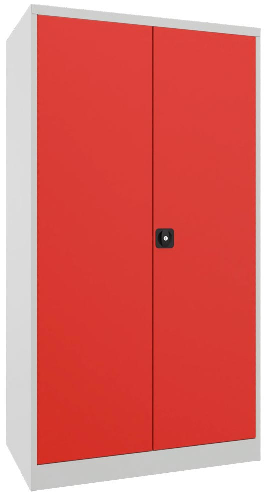 ∙ Besonders stabile, verwindungssteife Stahlblechkonstruktion ∙ Oberfläche pulverbeschichtet ∙ Schränke mit gemeinsam verschließbaren Flügeltüren mit Verstärkungstaschen ∙ Die Türen sind über einen dreiriegeligen Drehgriff mit integriertem Zylinderschloss inkl. 2 Schlüsseln verschließbar ∙ Türöffnung 180 ° ∙ Belastbarkeit je Boden 200 kg, je Schublade 60 kg bei gleichmäßig verteilter Last ∙ Gehäuse-Belastbarkeit 1300 kg ∙ Einrichtungselemente im Raster von