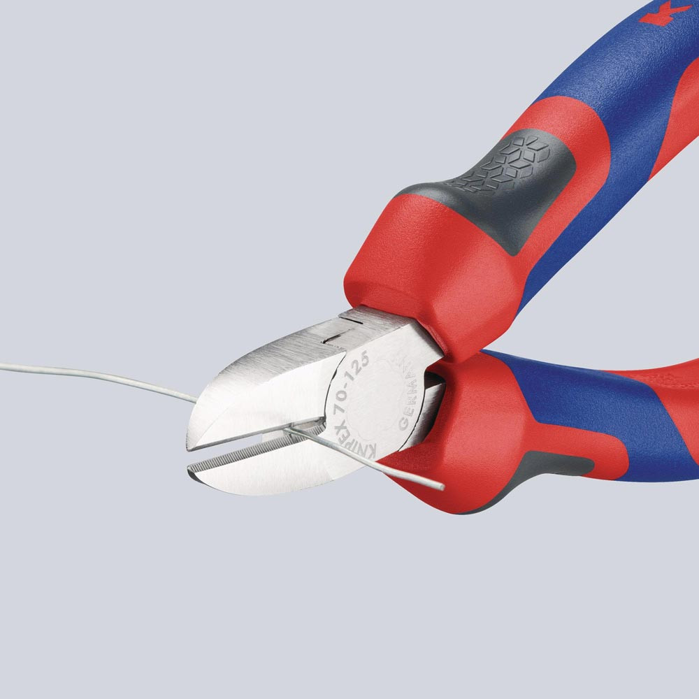 schlanke Kopfform · sauberer Schnitt bei dünnen Cu-Drähten, auch an den Schneidenspitzen · Schneiden zusätzlich gehärtet, Schneidenhärte ca. 62 HRC · Vanadin-Elektrostahl, geschmiedet, mehrstufig ölgehärtet