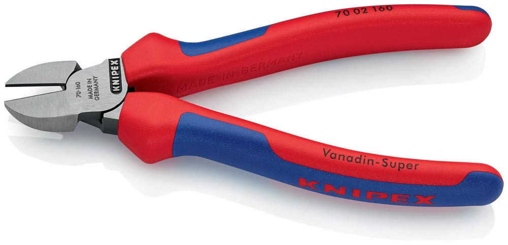 schlanke Kopfform · sauberer Schnitt bei dünnen Cu-Drähten, auch an den Schneidenspitzen · Schneiden zusätzlich gehärtet, Schneidenhärte ca. 62 HRC · Vanadin-Elektrostahl, geschmiedet, mehrstufig ölgehärtet