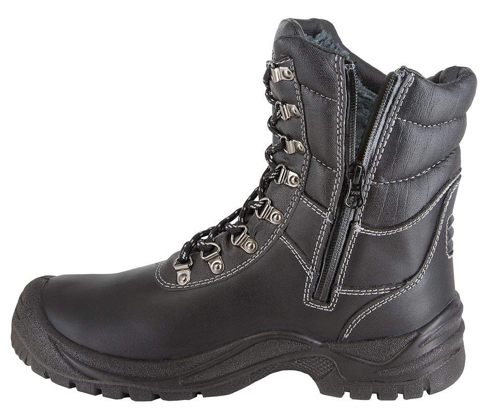 ∙ Komplett mit Weblamm warm gefüttert ∙ Geschlossene, gepolsterte Lasche ∙ Wasserabweisender, verdeckter und robuster YKK-Reißverschluss ∙ Mit Weblamm bezogene, auswechselbare Fußbetteinlage ∙ PU/PU-Laufsohle in schwarz/schwarz mit Anstoßschutz ∙ Rutschhemmend, wärmebeständig bis ca. 120 ºC, kälteflexibel bis -20 ºC ∙ PU-Zwischensohle mit elastischer und dämpfender Wirkung ∙ Geeignet für die Einlagenversogung nach DGUV 112-191