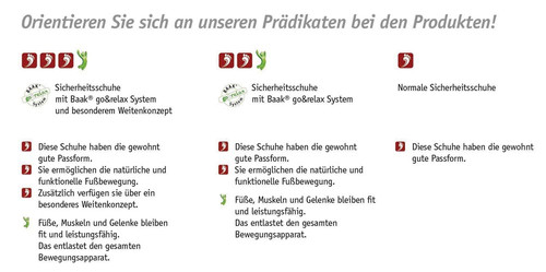 nach DIN EN ISO 20345 · S3 SRC HRO WR · vollnarbiges, robustes, atmungsaktives LWG-Rindleder· BAAKdry® Futter · wasserdichte und atmungsaktive Membrane · Heel-Safety-System · Baak® Stahl-Flexkappe · integriertes H-Kopplungs-Element zum fußgerechten Abknicken · durchtrittsichere Kevlar® Zwischensohle · Baak® go&relax System · PU-Zwischensohle mit hohem Energieaufnahmevermögen · Baak® ESD Softstep+ Einlegesohle · kurzzeitig bis 300 °C belastbar · rutschhemmend, resistent gegen viele Säuren und Laugen, schnittsicher · nach DGUV 112-191 · Weite 11