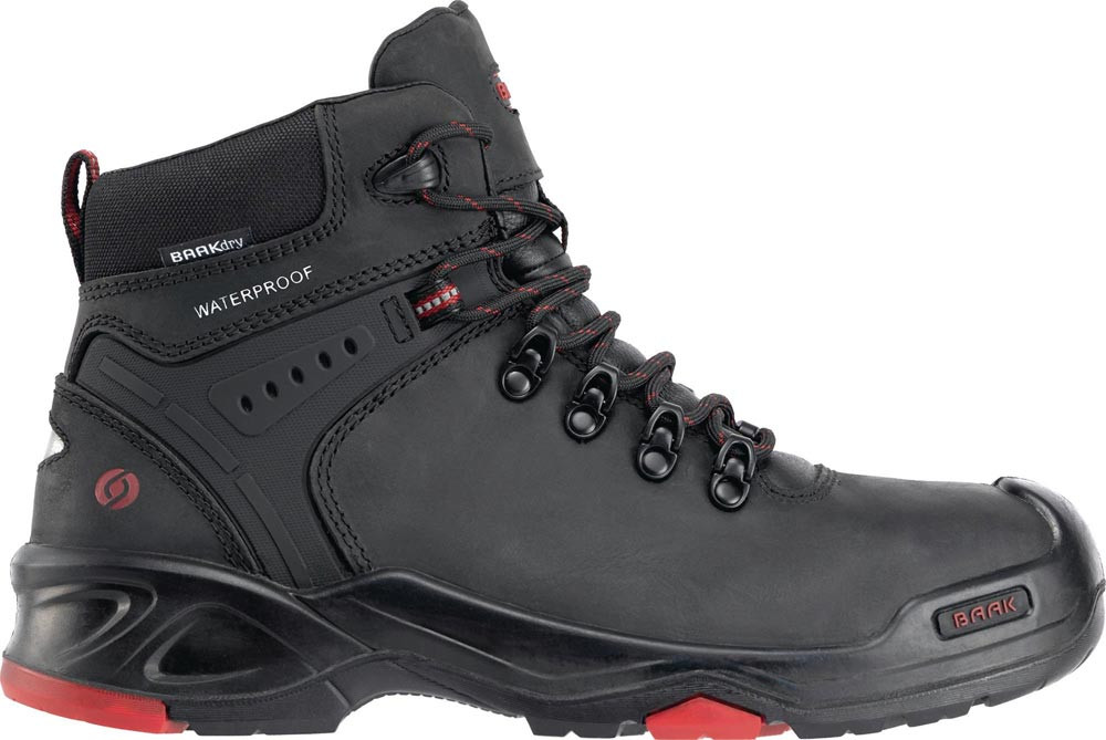 nach DIN EN ISO 20345 · S3 SRC HRO WR · vollnarbiges, robustes, atmungsaktives LWG-Rindleder· BAAKdry® Futter · wasserdichte und atmungsaktive Membrane · Heel-Safety-System · Baak® Stahl-Flexkappe · integriertes H-Kopplungs-Element zum fußgerechten Abknicken · durchtrittsichere Kevlar® Zwischensohle · Baak® go&relax System · PU-Zwischensohle mit hohem Energieaufnahmevermögen · Baak® ESD Softstep+ Einlegesohle · kurzzeitig bis 300 °C belastbar · rutschhemmend, resistent gegen viele Säuren und Laugen, schnittsicher · nach DGUV 112-191 · Weite 11