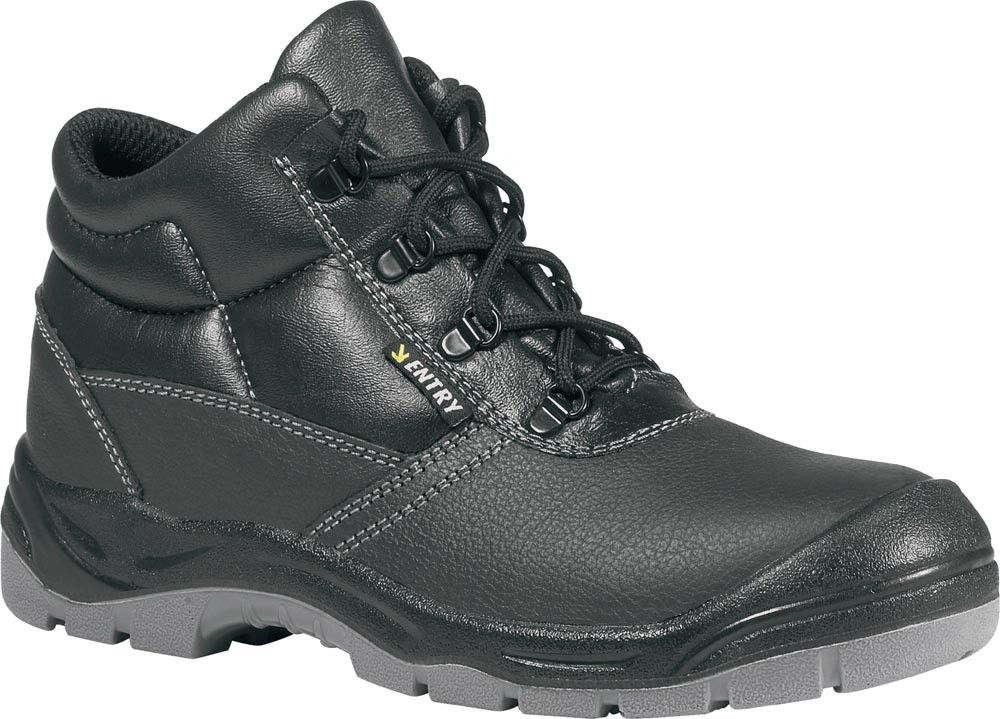 nach DIN EN ISO 20345:2011 · S3 SRC · Obermaterial: Schaft aus schwarzem Rindleder mit Überkappe, wasserabweisend · gefütterte Lasche und Bordüre · atmungsaktives Futter · Stahlkappe · Stahlzwischensohle · Flat-Fit-Fußbett: durchgehendes, anatomisch geformtes Fußbett · weiche PU/PU-Komfortsohle · rutsch- und abriebfeste PUR-Laufsohle · Weite 11