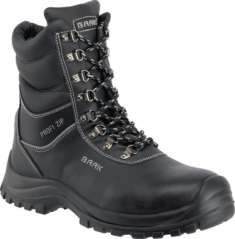 nach DIN EN ISO 20345 · S3 CI SRC · Obermaterial: glattes Rindleder · weiche Schaftpolsterung · komplett warm gefüttert mit Weblammfutter · zum Schnüren mit zusätzlichem seitlichen YKK-Reißverschluss für schnellen Ein- und Ausstieg · breite Stahlkappe · Stahlzwischensohle · ganze auswechselbare Fußbetteinlage, bezogen mit Weblammfutter · kälteisolierende, rutschhemmende PU/PU-Sohle mit Anstoßschutz, kälteflexibel bis -20 °C, nicht kreidend · zertifiziert nach DGUV 112-191 für den Einsatz bestimmter orthopädischer Einlagen · Weite 11