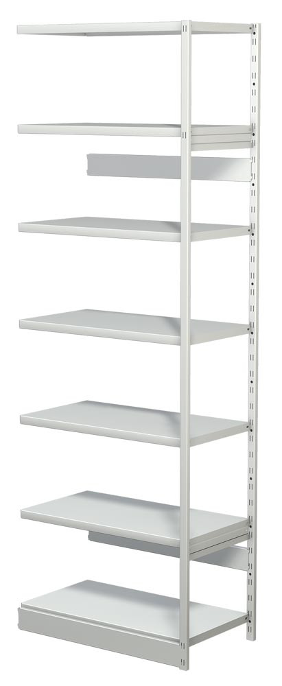 Steckregal ohne Rückwand, Anbaufeld, 7 Fachböden, 6 OH, BxTxH 750x300x2250 mm, lichtgrau E854413