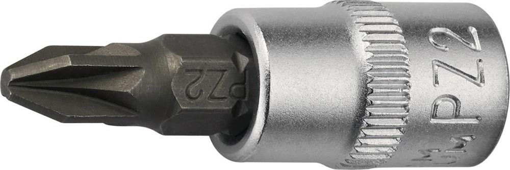 6,3 mm (1/4 ″)-Vierkantantrieb · für Schrauben mit Kreuzschlitz (PZD) · Sockel aus CV-Stahl · matt verchromt · Klinge aus Sonderstahl · phosphatiert · DIN 3120 / ISO 1174