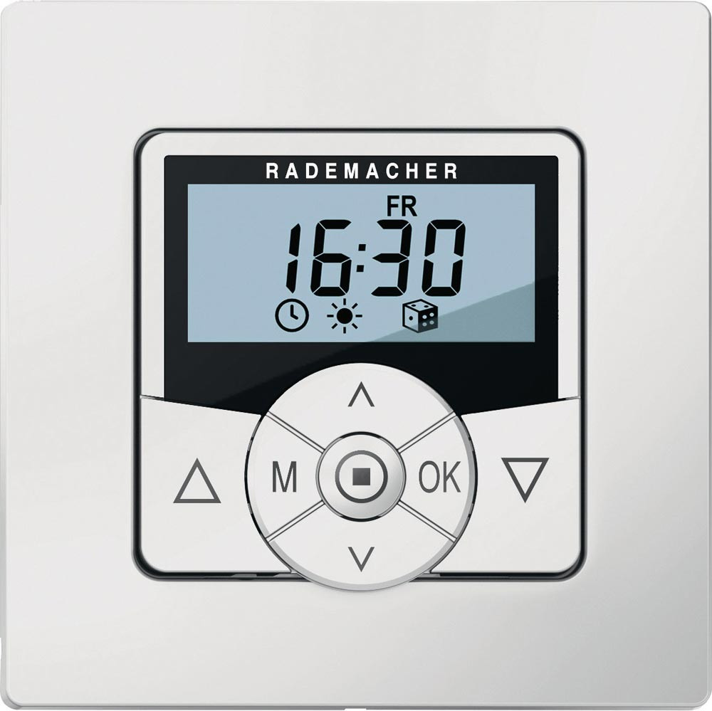 Steuerung für Rohrmotore · Installationsassistent · Automatikfunktionen: Tages-/Wochen-/Astroprogramm, Zufallsfunktion individuell programmierbar · Raffstorefunktion (Tippbetrieb, Wendeautomatik und Motorlaufzeit einstellbar) · Sonnen-/Dämmerungssteuerung mit S/D-Sensor möglich · Lichtfunktion · Zwischenpositionen · Blockiererkennung bei mechanischen Rohrmotoren integriert · Endpunkteinstellung für elektronische RolloTube Rohrmotore · automatische Sommer-/Winterzeitumstellung · beleuchtetes, großes Display mit Kontrasteinstellung · Tastensperre Versorgungsspannung: 230 V / 50 Hz, 60 Hz