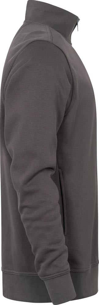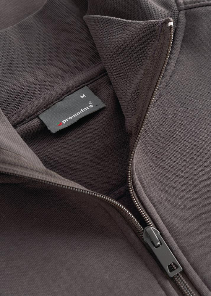 68% Baumwolle / 32% Polyester, ca. 325 g/m² · Halbmond im Nacken · Ton-in-Ton Reißverschluss am Kragen mit flauschig angerauter Innenseite · versetzte Seitennaht · Seitentaschen · Elastanbündchen an Ärmeln und Saum · exzellente thermophysiologische Eigenschaften durch angeraute 3-fädige Sweatware · erstklassige Waschergebnisse bei 60°C sowie trocknergeeignet · modern geschnitten · zertifiziert nach OEKO-TEX® Made In Green: M21LRMUH5