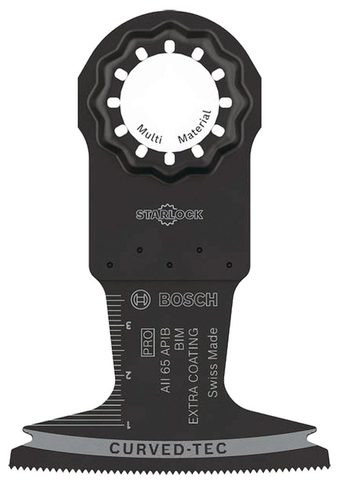 zum schnellen Schneiden von Holz, weichem Metall und Kunststoff · für Tauchschnitte, Bündigschnitte und präzise Ausschnitte · Bi-Metall Blatt kombiniert harte, beschichtete Zähne mit flexiblem Blattkörper · Curved-Tec-Design: ideal für ausrissfreie Tauchschnitte