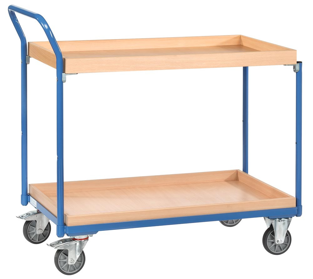Tischwagen, 2 Kästen, Ladefläche LxB 850x500 mm, Außenmaße LxBxH 986x500x1039 mm, Traglast 300 kg, RAL 5007 brillantblau E1322652