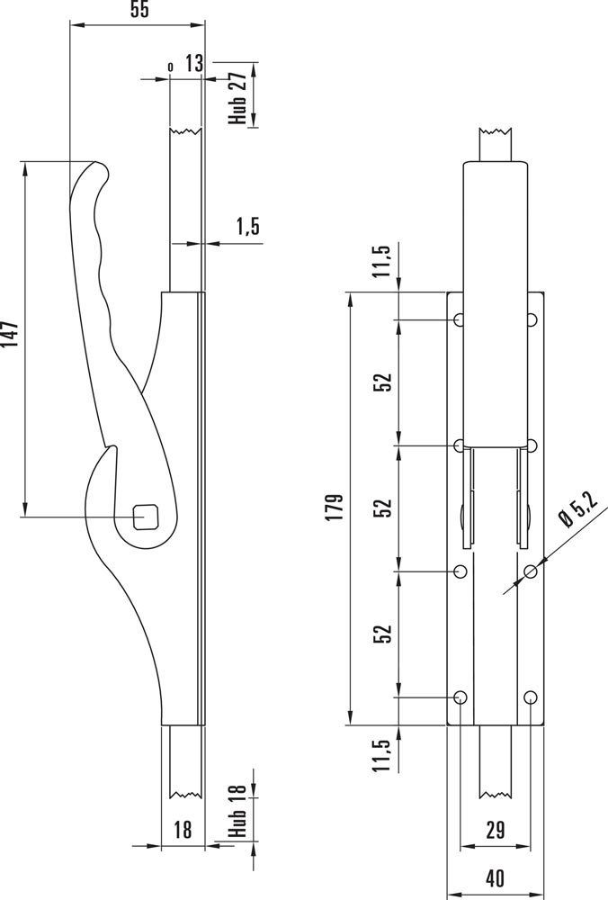 neutrales Design für alle baulichen Voraussetzungen · alle Kanten gerundet · für Vierkantstangen · Getriebekasten aus Stahl 1,5 mm tiefgezogen, galvanisch verzinkt · stabile Getriebeteile