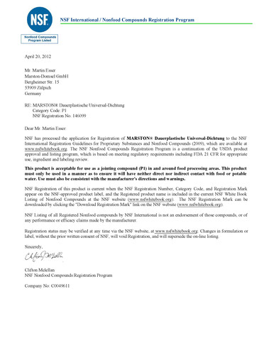 Zulassung DVGW, NSF P1