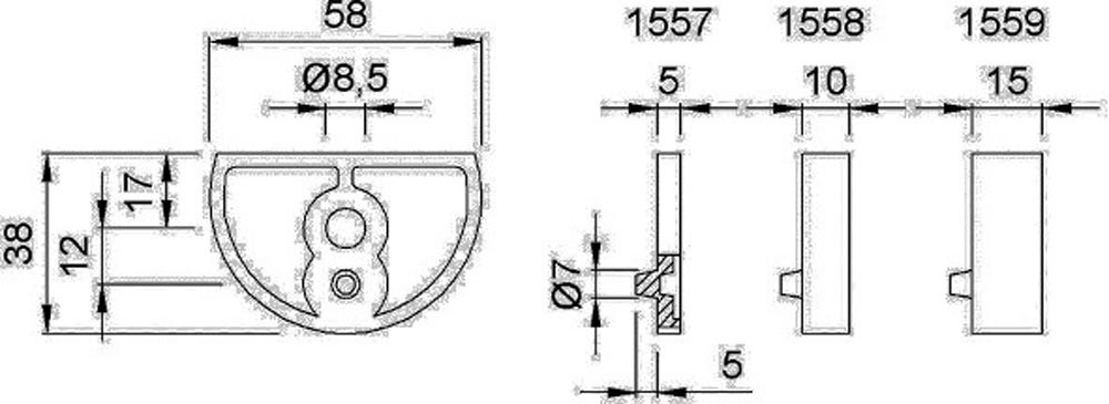 Unterlage 1559 Aluminium silberfarbig eloxiert 58 mm Höhe 15 mm f. Art. 3000258199 E6429890
