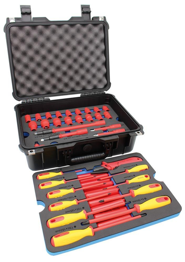 Enthält alle wichtigen Werkzeuge, die das Arbeiten an Elektrofahrzeugen, stromführende Leitungen oder sonstigen elektrischen Gegenständen ermöglichen ∙ Alle Bestandteile des Satzes sind nach der Norm DIN EN 60900 VDE 0682-201:2013-04 zertifiziert und somit bis 1.000 Volt Wechselspannung oder 1.500 Volt Gleichspannung isoliert
