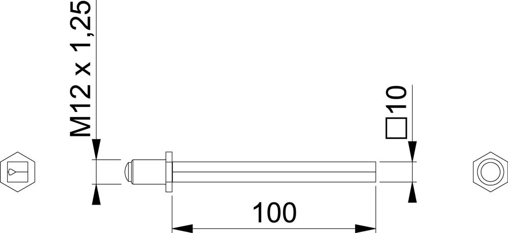 Vierkantstift FDW-Profilstift Vierkant 10 x 100 mm Eisen verzinkt geteilt M12 x 1,25 E6432145