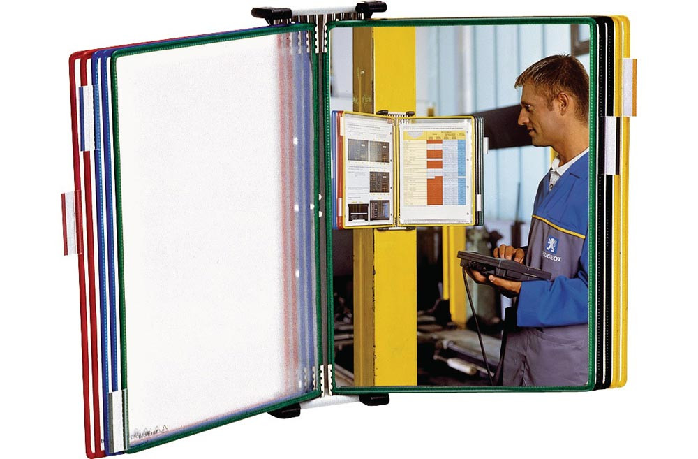 Sichtafelsystem, Wandhalter, 10 DIN A4 PVC-Tafeln, sortiert in blau, rot, gelb, grün, schwarz E860151