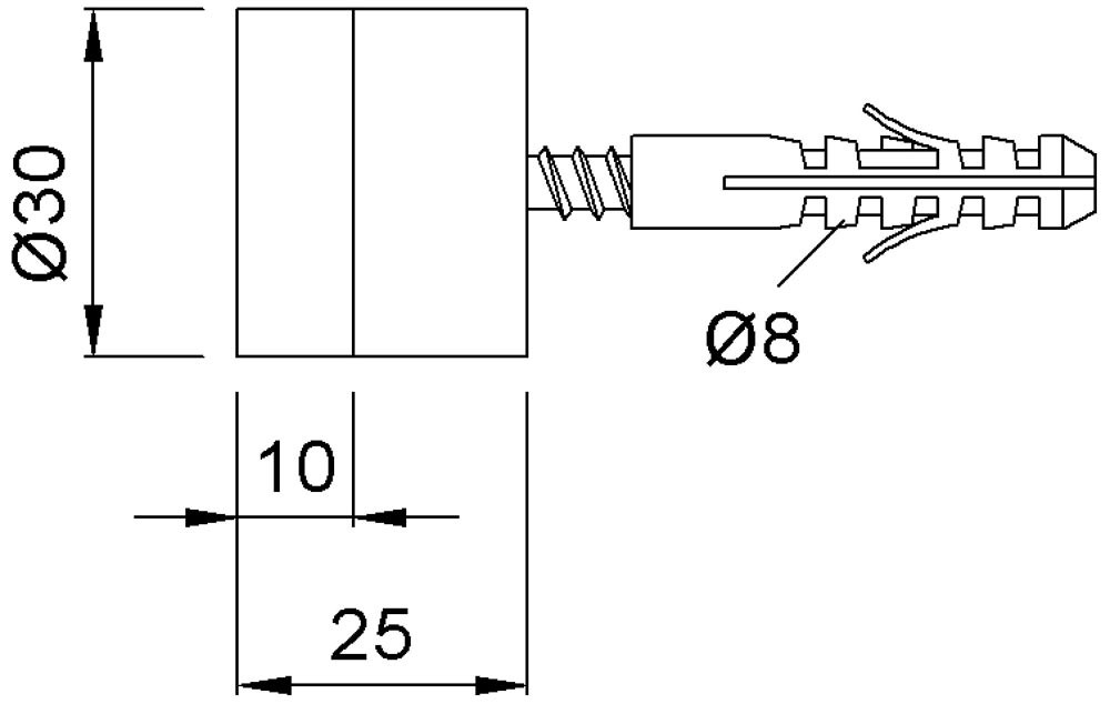Edelstahl-Rostfrei geschliffen · Ø 30 mm · Gummipuffer schwarz · mit Befestigungsmaterial
