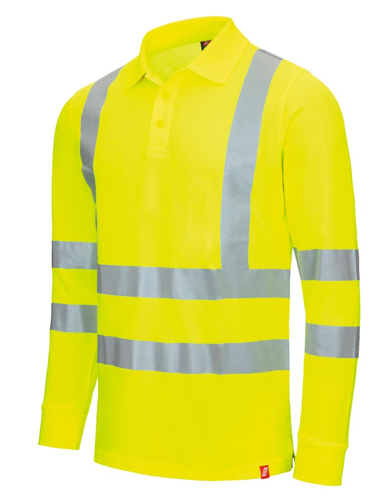 Langarm-Poloshirt nach EN ISO 20471, Klasse 3 und EN ISO 13688 ∙ Aus 55% Baumwolle/45% Polyester, ca. 190 g/m2 ∙ Angenehmer Tragekomfort dank weichem Material ∙ Verlängerter Rücken für mehr Komfort ∙ Mit geripptem Kragen ∙ Knopfleiste mit drei gleichfarbigen Knöpfen ∙ Strickbund an Ärmeln für optimalen Sitz ∙ Robuste Doppelnähte am Saum ∙ Umlaufende Reflexstreifen und Schulterreflexstreifen für bessere Sichtbarkeit ∙ Atmungsaktiv ∙ Geriegelte Seitenschlitze ∙ UV-Schutz UPF 40+ ∙ Regular Fit