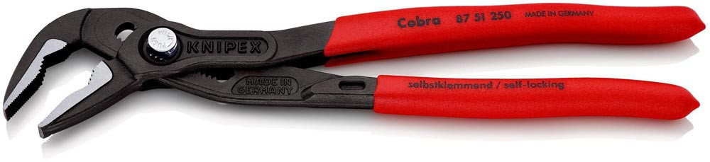 KNIPEX 87 51 180 Cobra® ES Wasserpumpenzange extra-schlank mit rutschhemmendem Kunststoff überzogen grau atramentiert 180 mm