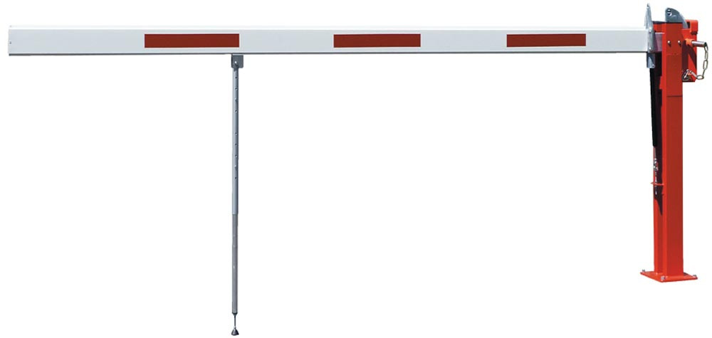 Wegesperre mit Gasdruckfeder, Farbe RAL 9010 HR m. roten Reflexstreifen, inkl. gefederte Pendelstütze, Breite 5 m